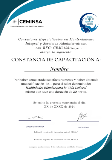 Nuestros planes de formación son desarrollados e impartidos por personal certificado, después de tus evaluaciones, recibirás una constancia de capacitación con valor curricular.